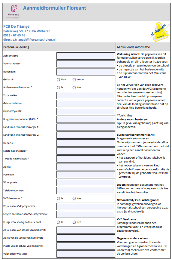 Hieronder vindt u het aanmeldformulier van De Triangel.