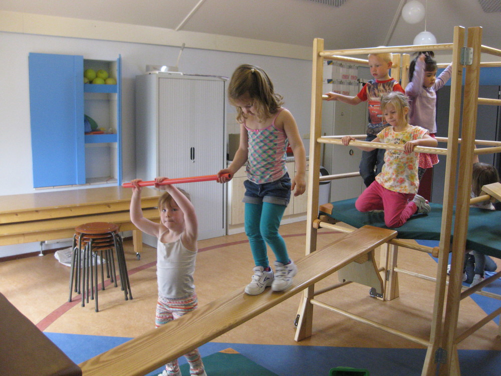 De goed uitgeruste, inpandige gymzaal wordt intensief gebruikt door groep 1/2.