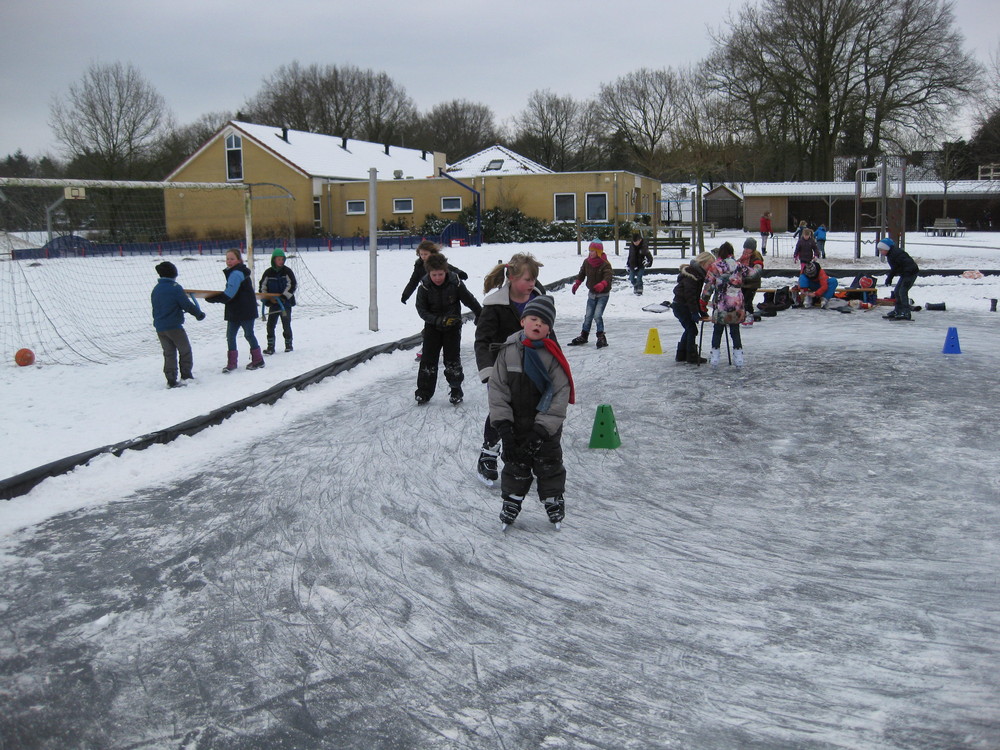 Het Plaatselijk Belang Witharen bouwt bij aanhoudende vorst een ijsbaan
